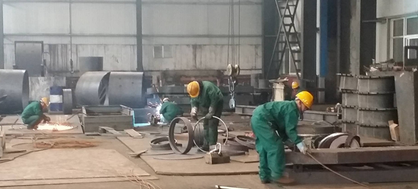 在班長劉學(xué)斌的帶領(lǐng)下,鉗工班全體成員每天加班加點趕活。正值數(shù)九寒天,室外溫度已到零下七度以下,室內(nèi)現(xiàn)場大家干的卻是熱火朝天。焊光閃爍,焊花飛揚,多臺焊機滿負(fù)荷工作;作為第一道下料工序的等離子氣割采用兩班運行,人停車不停,深夜12點依然照常運轉(zhuǎn),為各種工件的按時完成做足準(zhǔn)備。