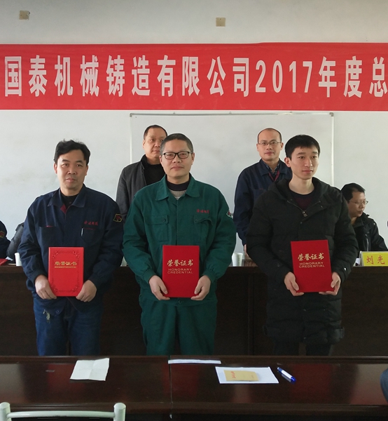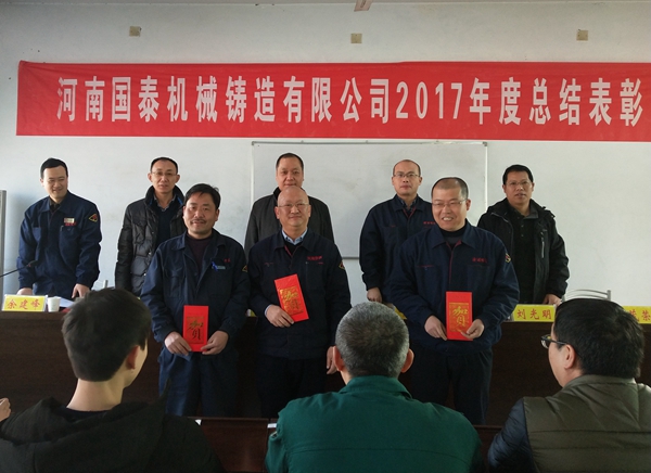 公司總經(jīng)理牛曉宇回顧總結(jié)2017年工作。2017年各項(xiàng)經(jīng)營(yíng)指標(biāo)達(dá)到且部分超過(guò)經(jīng)營(yíng)大綱要求,經(jīng)營(yíng)業(yè)績(jī)穩(wěn)中有升。主要是環(huán)保技改工程的實(shí)施、工藝質(zhì)量的提高、管理制度的完善落實(shí)。亮點(diǎn)是水平連鑄環(huán)保技改工程的投產(chǎn)和效益的顯現(xiàn),并由此涌現(xiàn)許多先進(jìn)個(gè)人、集體典型。2018年重點(diǎn)工作是完善鑄造環(huán)保設(shè)施及總體安全規(guī)劃,完成更新更高的生產(chǎn)經(jīng)營(yíng)目標(biāo),繼續(xù)加強(qiáng)生產(chǎn)經(jīng)營(yíng)管理、制度管理、員工培訓(xùn),努力開(kāi)拓市場(chǎng),提高員工福利。
