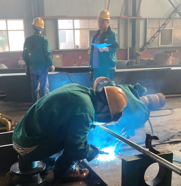 高溫下,鉗工們工作起來更加辛苦。電焊時火花飛濺,雖然隔著焊帽,但隔不住熱浪,熏得滿臉發(fā)燙,豆大的汗珠從臉上滑落,汗水濕透了衣衫。風(fēng)扇把熱空氣吹成了熱風(fēng),顯得更加燥熱。即便是這樣,他們依然沒有停止手上的工作,沒有絲毫懈怠。